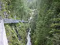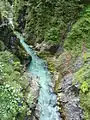The Leutasch Gorge (German: Leutaschklamm or Leutascher Geisterklamm) is a gorge near Mittenwald and Unterleutasch in the Bavarian-Tyrolean border area through which the Leutascher Ache river flows. It is very steep-sided and was not opened to tourists until 2006. To do this a 1.4 million euro, EU-supported, Austro-German project was undertaken to build steel walkways and bridges over a distance of 970 metres. With a total length of 1,650 metres it is the longest accessible gorge in the Eastern Limestone Alps. The gorge was opened on 24 May 2006.