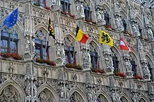 Stadhuis ) of Leuven, Belgium, is a landmark building on that city's Grote Markt (Main Market) square, across from the monumental St. Peter's Church. Built in a Brabantine Late Gothic style between 1448 and 1469, it is famous for its ornate architecture, crafted in lace-like detail.