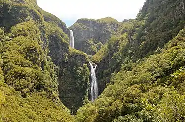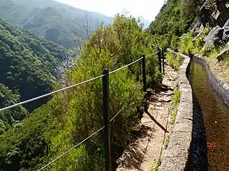 It is one of the most visited levadas on the island. Access is possible via the road ER110 in Paul da Serra. From there walking or taking a bus is possible to the start of the levada which is at the casa do Rabaçal, from here it is possible to get to the lagoon of the Wind (Lagoa do Vento), 25 Fontes Falls and the Risco levada, which leads to the impressive Risco waterfall that emerges from the lagoon. A valley of vertical walls where different types of volcanic rock allow water from the upper water table to emerge in the form of numerous fountains along the walls of the mountain. The only problem is the narrowness of the road, in the middle of the Laurel forest and other walkers.[1][2]