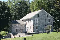 Levan Farm, also known as the Issac Levan Tract and Jacob Levan Farm, is a historic house and farm complex located in Exeter Township, Berks County, Pennsylvania. The house was built in 1837, and is a two-story, five bay by two bay, stone dwelling in the Georgian style. It is built of fieldstone with light colored and red sandstone quoins. It has a later 1+1⁄2-story rear addition. Also on the property are a stone and wood frame bank barn, spring house, lime kilns, granary, corn crib, and wagon shed. The Levan Farm was established by Isaac Levan about 1730 on a land grant from William Penn.[2]