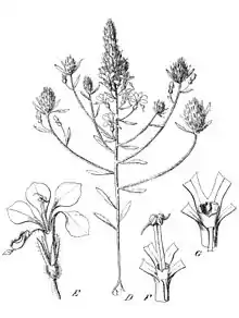The genus is known to be closely related to the genus Stylidium. Specifically, the subgenus Centridium is the subgeneric taxonomy in the genus Stylidium that appears to be most closely related to Levenhookia and most suggests an ancestral relationship.[2] Sherwin Carlquist notes that Levenhookia is most likely a derivative of Stylidium and has relied on outcropping as its mode of evolution. The species in this genus represent a series from L. preissii, which requires cross pollination for reproduction, to L. dubia, which relies on facultative self-pollination.[2] In an earlier publication, Rica Erickson described this series in reverse, suggesting that path as the evolutionary sequence.[4] Several species of Stylidium have also been noted to mimic flower morphology of certain Levenhookia species to utilize similar available pollinators. Specifically, S. xanthopis mimics L. leptantha and S. ecorne mimics L. pauciflora.[2]