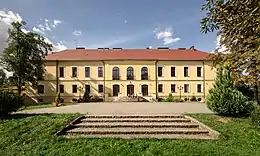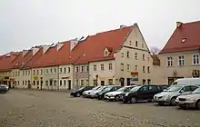 During World War II the Germans brought hundreds of forced labourers to the town, mostly Poles, but also Russians, Ukrainians, the French, Jews ans Serbs, both civilians and prisoners of war.[4] In the final stages of World War II, in January 1945, the Germans evacuated most of the population, leaving only the elderly in the town, and recruited many inhabitants into the Volkssturm.[4] On 4 February 1945 the town was overtaken by the Red Army, which plundered it afterwards.[4]