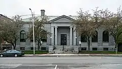 The Colonial Revival library building was constructed in 1902 by Coombs & Gibbs.[4] The building was added to the National Register of Historic Places in 1978.[5]