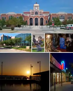 Lewisville's rapid growth began when construction of the Garza–Little Elm Dam finished in 1954, expanding the Garza–Little Elm Reservoir into what is now Lewisville Lake.[39] The city adopted a home rule charter for a council–manager style of municipal government in 1963, becoming one of only a few home rule cities in Texas with a population of less than 5,000.[40] In September 1969, 13 days after Woodstock, the city hosted the Texas International Pop Festival, which drew over 150,000 spectators and featured performances by Janis Joplin, B.B. King and Led Zeppelin.[41] In 2011, the Texas Historical Commission dedicated a historical event marker at the Hebron A-train station in Lewisville to commemorate the event.[42]