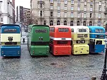 In 1968, three Atlanteans were bodied by Marshall as single deck buses for Great Yarmouth Corporation.[10] Portsmouth had 12 Atlantean chassis with single deck bodywork from Seddon Pennine, and lastly Birkenhead ordered three Northern Counties bodied single deck Atlanteans, albeit delivered to Merseyside in Birkenhead colours.