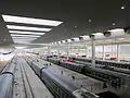 The Lhasa passenger railway station is large compared to current needs, containing four tracks serving two island platforms under one roof. There is space for one more island platform and three more tracks.