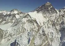 The first western explorers to discover the col were George Mallory and Guy Bullock on the 1921 British Mount Everest reconnaissance expedition although it was only Bullock who actually reached it. They were exploring the West Rongbuk Glacier in Tibet hoping it might give access to a route for reaching the summit of Everest.[6][7] They named it "Lho La", meaning "South Pass" simply because it was to the south of where they were. This rather self-centred decision was to give difficulties later, as mentioned above. Lho La gave access to Everest's West Ridge and to its Western Cwm but they thought neither of these gave feasible ways of ascent.[6][8]