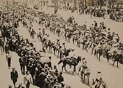In 1914, Zapata met at the head of his army with Pancho Villa and his forces at Mexico City to determine the course of the revolution.[12] In practice, the alliance between Villa and Zapata as the Army of the Convention did not continue to function when the two parted. The Zapatistas fortified themselves and focused on creating the Morelos Commune, rather than venturing out to attack the Constitutionalists.[13]