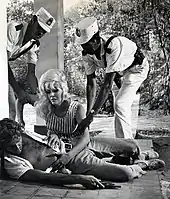 Libertad's paternal grandfather was a Slovenian landowner, settled in Río Negro. She was named by her father, a handy businessman who was murdered, whose skill she inherited. Naughty in her childhood, the widow mother found a second husband and entrusted the girl's education to a Catholic school, ruled by nuns. They expelled her four times, but then her grandmother bribed them with donations, so young Libertad was finally always readmitted. Following her marital failure, she kept herself marriageable, preferring have torrid and fleeting fancy men than a stable marital union. Big-bottomed men were repulsive to her: she felt attracted by brawny males. In her adult decades, she acquired an apartment in Madrid as well as another in Catalonia. Her mental inquisitiveness was one of her distinctive traits. Agnostic, amateur gardener, having a clear conscience was paramount for her.[6] Passionate about acting since a child, she used to take part in school plays as María de los Remedios de Escalada and Virgin Mary. In those years, she threw an inkwell against a nun's neck to the point of the latter had to be hospitalized because the former had made her bleed. Her father in law adored her and had set a lovely family up in Córdoba. He insisted that she was sweet enough to be Leonardo's wife, telling her: "you should give that crazy one up". In fact he was so glad with Libertad as daughter in law that he proposed her to replace her husband by another son of him, a brother in law, hence. Libertad was strongly resolute to become an artist against the familiar opposition and her former spouse's wishes, who expected that she would renew their married life after starving and getting penitent. However, success avoided it: with few money and still brilliant ideas she unexpectedly posed in bikini on a trampoline at a Venezuelan hotel while Graciela Borges answered journalists' questions, talking to them about Cannes, so photographers started to capture her and press workers approached to the then starlet, attracting attention that day. She also made put in every local cinema a poster stated "Libertad Leblanc, Isabel Sarli's rival". "I admired Isabel's career because when sixties started she had become a living goddess in American countries and even in Great Britain", she would confess decades later. Consequently, film directors and producers contracted Libertad, and soon her initial leading roles on screen turned out to be profitable enough to begin her independent life. And most important of all: Libertad deliberately made it without manager, she always would manage her own career. Thus, in her late twenties, the newly acclaimed actress took a stance as the self-made woman who did not want to remain subjected to anyone else.[7][8] Libertad shown two lines of artificial eyelashes and two wigs off simultaneously, with the result that she appeared on screen as a transvestite, of which she was deeply proud. Get carried away by what in German it's called "Sehnsucht", "Fernweh",[9] a very strong Eleutheromania made her went over Asia and Europe in her leisure. Her name means "freedom".[10] Rather, the actress lived in accordance with what her name means.[11]