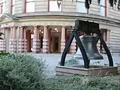 Liberty Bell refers to one of two replicas in Portland, Oregon, United States, of the original Liberty Bell in Philadelphia. The first replica was purchased in 1962, and installed in the rotunda of City Hall in 1964. On November 21, 1970, it was destroyed in a bomb blast that also damaged the building's east portico. The second replica was installed outside of City Hall soon after the blast (c. 1972) with funds from private donations. It was dedicated on November 6, 1975. The bell is listed as a state veterans memorial by the Oregon Department of Veterans' Affairs.