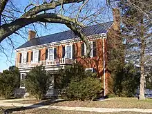 The earliest section was built in 1778 and forms the first floor and much of the foundation of the new rear addition. It was originally called Solitary Hall. The two-story, five bay, brick Federal style front section was added about 1815. It has a modillion cornice, gable roof, exterior end chimneys, and one and two-story frame additions built off of the side and rear elevations. Also on the property is a contributing brick dependency also built about 1815.[4]