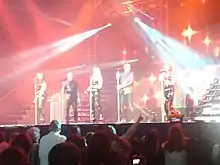 On 29 March 2013, Heaton confirmed that Liberty X would yet again disband following the concerts, saying: "We talked about it, and we thought we've got so many children between us and quite a few things individually going on that we didn't want the pressure to be successful again. We just wanted to have fun. I know some of the other bands are planning to release new material but Liberty X, we are not planning to do that. We are just enjoying it for what it is. We're going to enjoy the gigs, all the performing and have fun and not take it too seriously – and know at the end, we go back to being mums and dads to our children. That's how it's different."[19] Whilst on Lorraine on 12 September, however, Heaton said, "When we filmed [The Big Reunion: On Tour] in May, we said 'no' and we said we weren't going to do anything, but because we love it so much, I'd like to say 'never say never'. So maybe ask me again after Christmas."[20] The group performed their final gig together on 15 December 2013. During The Big Reunion: On Tour, broadcast in September 2013, Heaton, Taylor and Young broke down whilst discussing the subject of splitting up.
