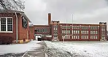The school was founded as Libertyville Township High School in 1917. When it first opened there were 138 students from Libertyville and the surrounding towns, and seven teachers.[6] The original building (the Brainerd Building, pictured below) was located at the corner of Brainerd and West Park Avenues. In July 2008, the Brainerd Building was named to the National Register of Historic Places for its role as the first four-year high school building in Central Lake County, and its over 80 subsequent years of continued use. With the opening of the Butler Lake Campus in 1956, the Brainerd Building served as the school's Freshman campus, requiring students to commute about a quarter mile by foot between the two campuses. With the growth in the student body from communities surrounding Libertyville, the school became known formally as "Libertyville Commmunity High School" until the opening of Vernon Hills High School in 1999. With the opening of Vernon Hills High School, the Brainerd Building was phased out as the Freshman campus, and the entire student body was eventually consolidated at Butler Lake. Plans to rehabilitate it for community use were unsuccessful and, to make way for athletic fields, demolition of the building began December 2014.[7] In 2003, Libertyville High School began a $9 million expansion project at the Butler Lake campus to add new offices, classrooms and an expansion of the school's music department.