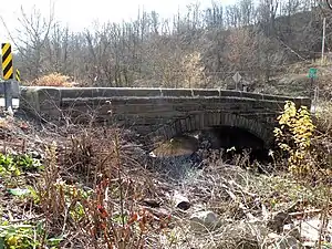 ![]() A stone arch bridge over Lick Run. | |