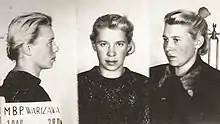 They were both arrested by the communist authorities. They were arrested on 30 June 1948. She was in Osielec when she was arrested and the others arrested included Lucjan Minkiewicz and his wife Wanda Czarnecka-Minkiewicz, Captain Henryk Borowski and Lt. Col. Antoni Olechnowicz.[2] She was sentenced to life imprisonment in 1950 and Major Szendzielarz was sentenced to death. He was killed on 9 February 1951 in Mokotów Prison.[3]