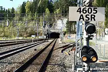 The Lieråsen Tunnel is 10.723 kilometers (6.663 mi) long and carries the double tracked, standard gauge Drammen Line between Asker Station and Lier Station.[1] Running through the mountain of Lieråsen, it passes through the municipalities of Lier, Røyken and Asker.[2] The line is electrified at 15 kV 16.7 Hz AC.[1] At Eriksrud, 10.48 kilometers (6.51 mi) from Asker Station, there is a switch allowing trains to change track.[3]