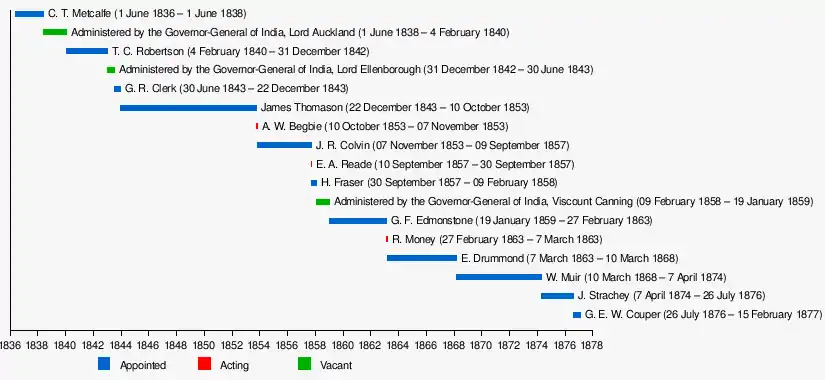 | 5 | J. R. Colvin | 7 November 1853 | 9 September 1857 | Died at Agra, 9 September 1857 |
