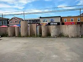 Commissioned by Ben's Bakery, Life was designed by noted painter Joseph Drapell shortly after he emigrated from Czechoslovakia as a refugee, landing in Halifax in 1966.[1][2] The piece, one of the artist's first professional works, sits along the edge of the bakery's former property, shielding an open-air car park and loading area from the commercial street beyond.