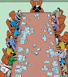 ![]() The Life Foundation's Board of Directors in The Amazing Spider-Man Vol. 1, #298 (March 1988) with Carlton Drake at the center. Art by Todd McFarlane. | |