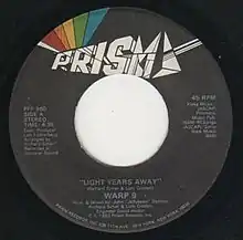 "Light Years Away" is the second single by the hip hop group, Warp 9, released in 1983. Written by Lotti Golden and Richard Scher and produced by Lotti Golden, Richard Scher, and John "Jellybean" Benitez,[1] the song appears on the group's debut album It's a Beat Wave (Prism Records) [2] charting on the Billboard R&B and dance charts.[3]