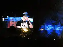 Eminem and Royce da 5'9" made their debut live performance as Bad Meets Evil for "Fast Lane" and "Lighters" at the 2011 Bonnaroo Music & Arts Festival.[66][67] They were accompanied by Eminem's hypeman from D12, Mr. Porter,[67] with Mars not attending the concert.[68] The live show was complemented with animated lighters displayed on the background screen,[68] while the duo wore Bad Meets Evil T-shirts and black hoodies.[67] Eminem also sported camouflage shorts.[69] In the beginning of the show, Eminem asked the audience to hold their lighters, if they had brought one, which most of them did.[67] The performance was widely praised, with James Montgomery from MTV confessing, "It's the same renewed vigor Eminem has displayed on his most-recent efforts."[67] News reporter Adam Graham from The Detroit News favored the concert, commenting on its effect on the audience, "Royce joined his partner-in-rhyme on stage for two songs, 'Fast Lane' and 'Lighters,' the latter of which lit up the humongous field in front of the [stage] in a sea of Bic lighters."[70]