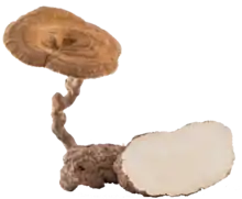 Lignosus rhinocerus, commonly known as tiger milk mushroom, belongs to family Polyporaceae in the division Basidiomycota.[2][3][4] This fungus is geographically distributed only in tropical rainforests in the region of South China, Thailand, Malaysia, Indonesia, Philippines and Papua New Guinea.[5][6]