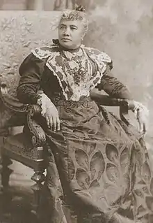 Following the January 20, 1891 death of King Kalākaua in San Francisco, his embalmed body arrived at Honolulu Harbor aboard the USS Charleston, draped in black with its ensigns at half mast.[1] His sister Liliʻuokalani was designated his successor.[2]