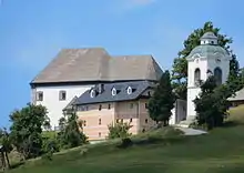 The local church, built on the top of the hill known as Lily Mountain (Limbarska gora; 773 m or 2,536 ft), is dedicated to Saint Valentine and belongs to the Parish of Moravče. It was built by Gregor Maček, Jr. around 1730 and has a free-standing short belfry.[6]