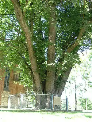 This lime has a multi-stemmed, massive trunk, with a large crown spread. Its CBH (circumference at breast height) was 11.07 metres (in 2014). The lime grew from 18 small trees, planted many years ago by an unknown voivode, according to legend. The bark of the tree was believed to be a cure for toothache. The church near the lime is dedicated to Saint Apollonia, who is a patron saint of stomatologists. The tree attracted pilgrims to the village, who bit the bark to heal their teeth[1].