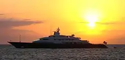 Limitless is one of the world's largest private superyachts. She was built in 1997 by German shipmaker Lürssen, with exterior design by the noted Jon Bannenberg and collaborator Jonathan Quinn Barnett,[1] and interior design by François Catroux.[2] The overall length is 96.25 m (315 ft. 8 in.), the width 12.50 m (41 ft.). She is powered by two engines of 5,420 kW (7,268 hp) each, reaching a speed of 25 knots (46 km/h; 29 mph), and was the first yacht to feature a combination of diesel and diesel-electric propulsion. Limitless is owned by Les Wexner, an American businessman who is currently chairman and former CEO of the L Brands corporation (formerly Limited Brands, and best known for its brand Victoria's Secret).
