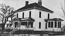 ![]() A photograph of a wooden frame house in 1901, Logo: if not the Lord, [it is] in vain. | |
