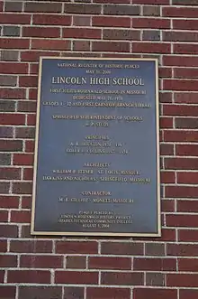 - Katherine Lederer, Scott P. Myers, and Steven E. Mitchell (April 2000). "National Register of Historic Places Inventory Nomination Form: Lincoln School" (PDF). Missouri Department of Natural Resources. Retrieved 2017-01-01.