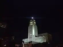 The Lindbergh Beacon, an aircraft beacon atop the Los Angeles City Hall, operated nightly from April 26, 1928, until just after the attack on Pearl Harbor. It was restored to its original condition in 2001, and Los Angeles magazine described it as "a tiara of light atop our beautifully restored Los Angeles City Hall."[1] City officials now occasionally put the beacon into operation for special occasions such as the year-end holidays.