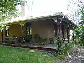 The railway station at Linden was built in 1874 and was named after Linden Lodge, the home built in 1865 by local businessman William Jolley Henderson.[3] Linden was originally known as Seventeen Mile Hollow because of its location 17 miles (27.35 km) from the Nepean River. It was originally the location of a tollhouse erected in 1849 and demolished in the 1860s during the construction of the railway.