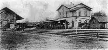 Lindern station, including the station building, was completed in 1852[5] and passenger and freight operations were recorded in the same year on the new Aachen–Düsseldorf–Ruhrort railway.[7] The ticket office was closed in 1989 and today (2013) the station building is used as a restaurant and a kiosk, while tickets can be purchased at a vending machine on the platform.[8]