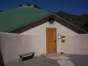 The group placed a special emphasis on sacred geometry, defined by Thompson as "a vision of divine intelligence, the logos, revealing itself in all forms, from the logarithmic spiral of a seashell to the hexagonal patterns of cooling basalt, from the architecture of the molecule to the galaxy."[9] Rachel Fletcher, Robert Lawlor, and Keith Critchlow lectured at Crestone on the application of sacred geometry, Platonism, and Pythagoreanism to architecture.[10] The exemplar of these ideas is the Grail Chapel in Crestone (also known as Lindisfarne Chapel), which is built to reflect numerous basic geometrical relationships.[11]