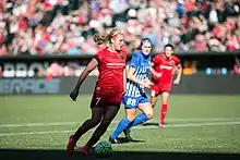 Lindsey Michelle Horan (born May 26, 1994) is an American professional soccer player for Olympique Lyonnais Féminin on loan from Portland Thorns FC. She previously played for the Portland Thorns FC of the National Women's Soccer League (NWSL), the highest division of women's professional soccer in the United States, and the United States women's national soccer team. In 2018, she was named NWSL MVP. Horan was a leading player for the Thorns during their 2017 championship season, scoring the winning goal in the championship game, and before that was a prolific scorer for Paris Saint-Germain FC, scoring 46 goals in 58 appearances. She was the leading scorer for the United States U-17 team at the 2010 CONCACAF U-17 Women's Championship.[2][3][4]