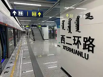 | Xi'erhuanlu | 西二环路 | ᠪᠠᠷᠠᠭᠤᠨ ᠬᠣᠶᠠᠳᠤᠭᠠᠷ ᠲᠣᠭᠣᠷᠢᠭ ᠵᠠᠮ | Huimin | |||