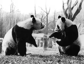 The pandas had been captured in the wild in June and December 1971. When the Nixons had a dinner with Chinese Premier Zhou Enlai at Beijing during the 1972 visit, First Lady Pat Nixon mentioned her fondness for the species, which Zhou replied, "I'll give you some."[1] They arrived at the National Zoo in Washington, D.C., on April 16, 1972, and were formally received several days later, on April 20, at a ceremony attended by Pat Nixon. While at the zoo, they attracted millions of visitors each year.