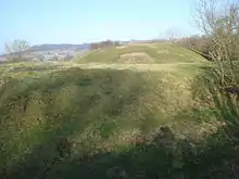 Occupied since at least the Middle Ages; there is evidence of medieval strip lynchets on a hillside near the village.[6] It is mentioned in the Domesday Book.[7] The village is close to the substantial Mortimer castle at Wigmore and there is evidence of an early motte and bailey castle in the village. It has not been excavated but the former presence of a stone keep has been suggested, as well as a 12th-century gate-house, with a curtain wall around the bailey.[8]