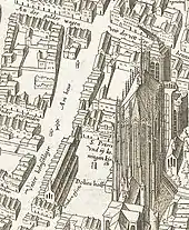[[File:Köln Domvorplatz 1752.png|thumb|left|upright=1.8|{{center|Johann Valentin Reinhardt: Cologne city view from 1570, Domhof (SN). Legende: