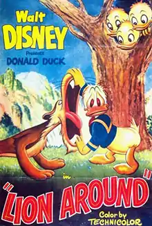 Lion Around is a 1950 Donald Duck cartoon featuring Donald Duck, his nephews Huey, Dewey, and Louie and Louie the Mountain Lion.[1] The film is the first appearance of Louie the Mountain Lion. In this episode, Donald is tricked into thinking he is getting attacked by a cougar.