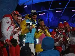 ![]() Medalists at the visually impaired biathlon events during the 2010 Winter Paralympics including Liubov Vasilieva and fellow Russian Paralympic Nordic skier Mikhalina Lysova | |||||||||||||||||||||||||||||||||||||||||