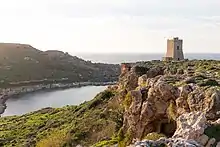 Lippija Tower was built in 1637 on the edge of Wardija Ridge overlooking Ġnejna Bay on the north west coast of Malta. The tower has Għajn Tuffieħa and Nadur Towers in its line of sight. The construction of the tower was personally financed by Giovanni Paolo Lascaris.