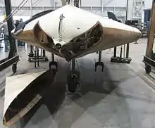 The large and even thicker vertical stabilizer was removed and replaced with one of much smaller size, along with a cockpit canopy from a Lockheed P-80 Shooting Star in a more conventional position. Together with improvements to the elevon hinges, this significantly reduced overall drag.[5][4]