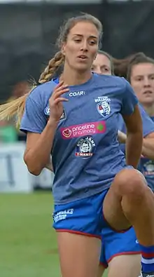 Lisa Williams (born 3 May 1991) is an Australian rules footballer who played for the Western Bulldogs in the AFL Women's competition. Williams was drafted by the Western Bulldogs with their twelfth selection and ninety-second overall in the 2016 AFL Women's draft.[1] She made her debut in the thirty-two point win against Fremantle at VU Whitten Oval in the opening round of the 2017 season.[2] She played six matches in her debut season.[3] She was delisted at the conclusion of the 2017 season.[4] She last played for Essendon in the 2018 VFL Women's season (VFLW), where she was made captain of the team.[5]