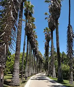 - Palms and cycads, including specimens of Canary Island palms (Phoenix canariensis), palms of the genus Washingtonia (Washingtonia filifera and Washingtonia robusta), Yucca gigantea. Cycads include Dioon and Encephalartos.