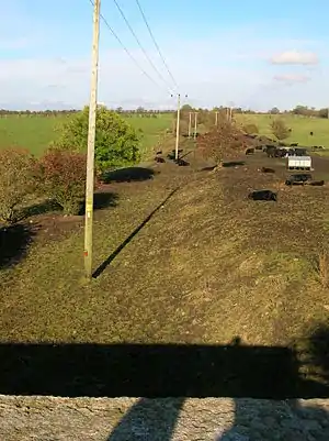 The row of three railway workers cottages survive as private residences and the loading dock is still a prominent structure in this otherwise somewhat featureless landscape near Lissens Moss. The railway fencing and gate survive as does the substantial road overbridge. The signalbox's old chimney partly remains as do the foundations and the cistern.