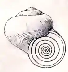 The height of the yellowish white shell attains 2 mm, its diameter 2.25 mm. The shell has a trochiform shape and contains 3½ whorls that enlarge rapidly. They are well rounded, with a deeply impressed suture. The apical whorl is a little prominent, visible in a side-view. The body whorl is ventricose. The aperture is nearly circular. The outer lip shows a slight angle anteriorly. The columella is evenly curved The base of the shell contains seven or eight spiral incised lines. They number seven or eight and cover the base of the shell and the umbilical depression. The umbilicus is imperforate or represented by a very narrow chink. The surface of the pale shell is nearly smooth, except for very fine, minute striations or growth lines, which give the surface a dull appearance. The freshest specimens have only a slight luster.[2][3]