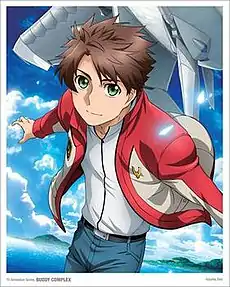 Buddy Complex is a 2014 Japanese mecha anime series produced by Sunrise in collaboration with Bandai Visual, Bandai Channel, Lantis, Banpresto, and Bandai Namco Games under Bandai Namco Holdings.[1] The anime series is original creation of Hajime Yatate and is directed by Yasuhiro Tanabe with series composition by BC project, original character designs and animation direction by Asako Inayoshi and Tomoshige Inayoshi, soundtrack music by Tatsuya Kato and 3D CG by Orange.[2] The series follows Aoba Watase, an ordinary high school boy who lived an average, everyday life commuting to high school in the city. On the first day back after summer break, Aoba is attacked by a giant robot that appears out of the sky. As he's pursued through the city, his classmate Hina Yumihara appears in a giant robot of her own. She rescues him, and tells him cryptically that "Dio is waiting," before she sends Aoba into the future and then disappears. When Aoba wakes up, he finds himself over seventy years into the future, where the Free Pact Alliance and the Zogilia Republic are at war with each other and there he meets young pilot named Dio Jyunyou Weinberg. This begins Aoba's new life as the pilot of the Free Pact Alliance and together with Dio, they would change the fate of the world.[3]